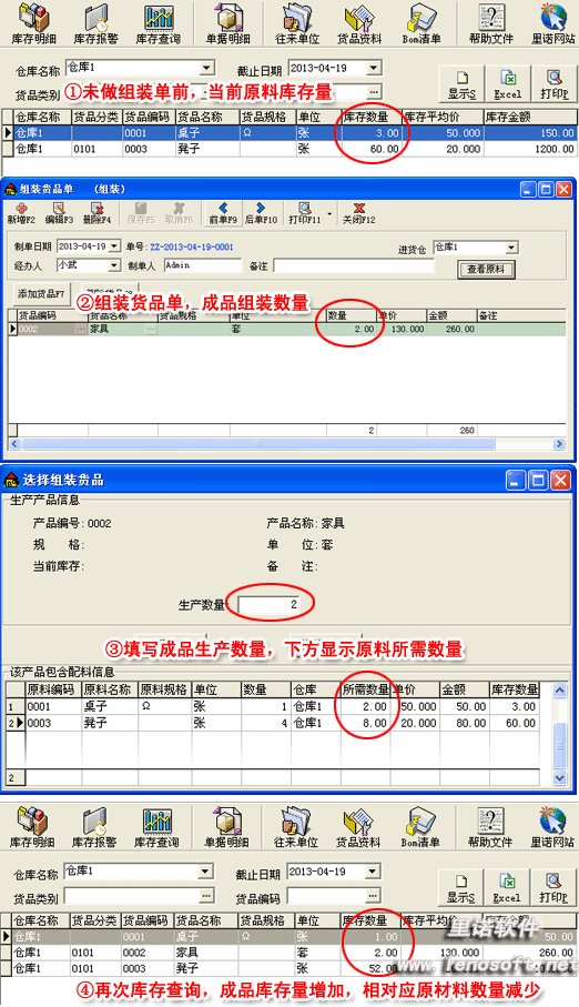 成品增加,相對(duì)應(yīng)原材料便根據(jù)之前BOM單所設(shè)相應(yīng)減少數(shù)量。
