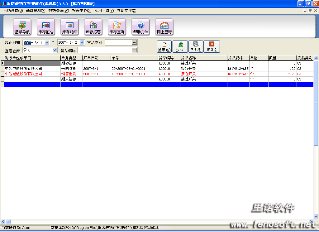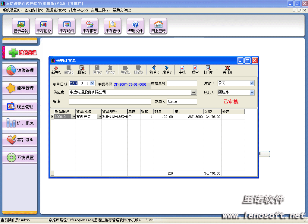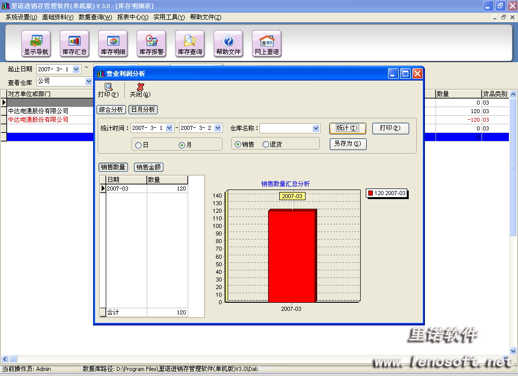 里諾進銷存管理軟件安裝好后,點擊Windows桌面上的里諾進銷存管理軟件的圖標(biāo)運行軟件,點擊試用窗體上面的"登錄"按鈕,程序會默認(rèn)用admin帳號登錄.