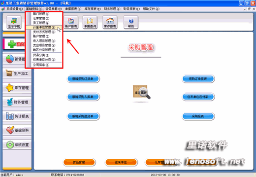 基礎資料:在基礎資料中可以對部門、倉庫、員工、計量單位、支付方式、帳戶、收入、支出、地區、貨品分類、往來單位、公司信息進行設置。