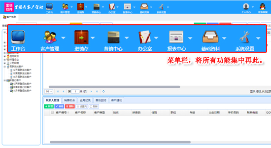 2.支持客戶管理、進銷存管理、商品管理、銷售管理、合同管理、我的辦公室等管理操作
