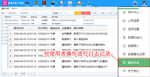 權限設置中對操作員使用操作進行日志記錄,讓管理者更方便直觀查詢到操作員的工作效率。