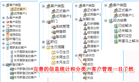 3.全面詳細的客戶資料及聯系人管理、售后回訪、客戶跟進和渠道管理等功能,并且支持多人聯系
